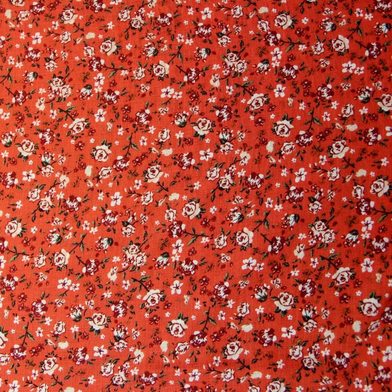 Viscose légèrement froissée (crincle) rouge orangé à fleurs