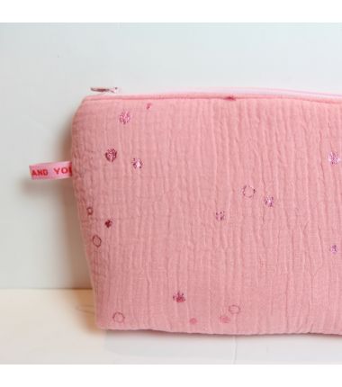 Kit à coudre une trousse molletonnée. dimension: 17x25cm. Le kit contient la double gaze saumon Ricodesign, le molleton le coton intérieur, la fermeture-éclair et la petite étiquette (Made with Love). Tuto inclus