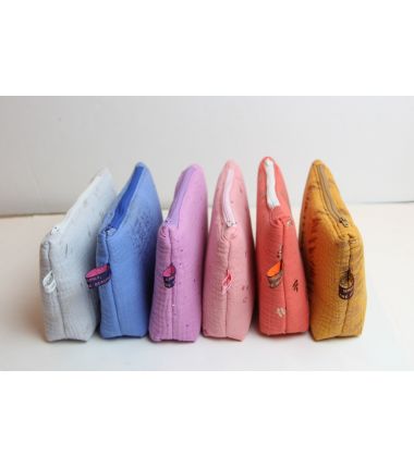 Kit à coudre une trousse molletonnée. dimension: 17x25cm. Le kit contient la double gaze corail à impressions feuilles or, le molleton le coton intérieur, la fermeture-éclair et la petite étiquette (Made with Love). Tuto inclus