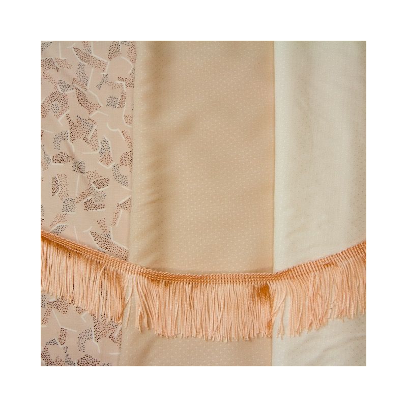 Kit à coudre un foulard triangle à 3 bandes. Dimension: 90x200 cm. Le kit contient les viscoses dont la viscose Vera Blush d'Atelier Brunette et les viscoses plumetis d'Atelier Brunette, et les franges. Tuto inclus.