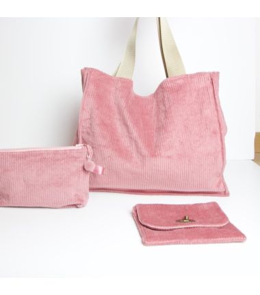Kit à coudre un sac cabas rose en velours. Dimension: environ: 35 x28cm. Le kit contient le velours rose, le coton intérieur, la sangle et la fermeture aimantée. Tuto inclus.