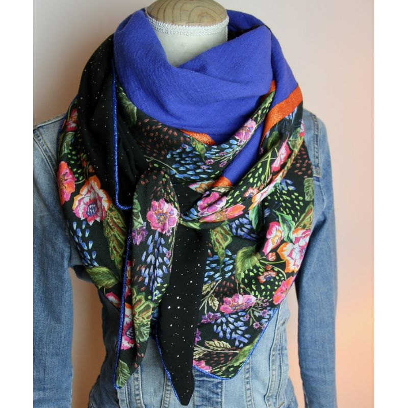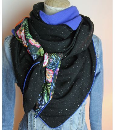 Attention, le tissu noir à stucs or est remplacé par une viscose noire à traits or. Kit à coudre un foulard triangle à 3 bandes. dimension: environ 90 x 200 cm. Le kit contient les viscoses et le coton léger, les rubans et le passepoil. Tuto inclus.